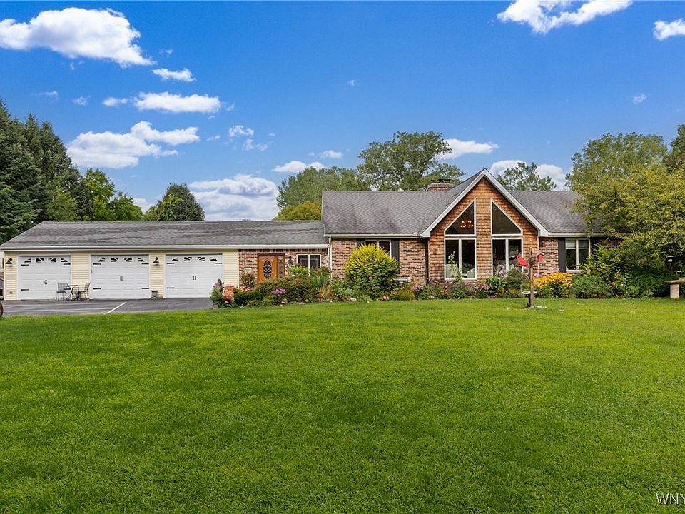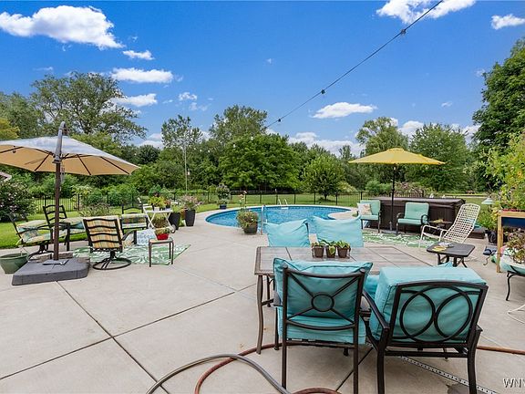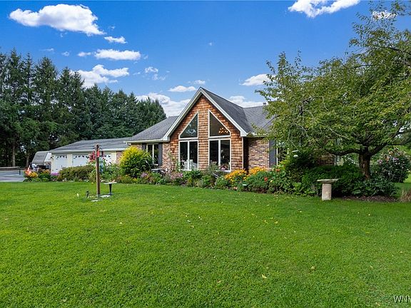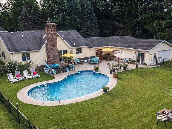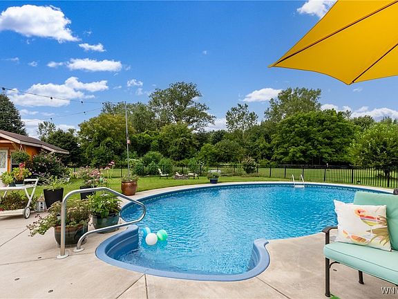 PRICE REDUCED! Check out the VIDEO walk through on this stunning Ranch home with cathedral ceiling great room featuring Chalet style windows and stacked stone Gas fireplace! Situated on 4.8 acre partially wooded lot in Wilson School district. New engineered hardwood flooring, updated kitchen w/quartz countertop, huge center island. All appliances stay! True sq ft is 1717. Tax records do not include living rm between kitchen and garage. This room has access to "staycation" backyard. The full bath recently updated w/ quartz double vanity,lighted mirror,tile and has hall and bedroom access. Bdrm 3 has been converted to huge pantry and laundry room. (Easy to change back and put laundry in huge basement) The Great Room will WOW your guests! Enjoy nature while resting on the couch! Fenced patio area holds 36x18 inground heated saltwater pool w/recently planted lawn, updated pool house and hot tub! Newly finished 29 x 24 bonus room offers brand new "Hotel style" Wall heater/A-C, pellet stove, half bath,slider and overhead door to backyard.Blacktop driveway has plenty of parking and holds a Pickleball court! Perennial gardens,evergreens mature trees.1 Yr Home Warranty Included!