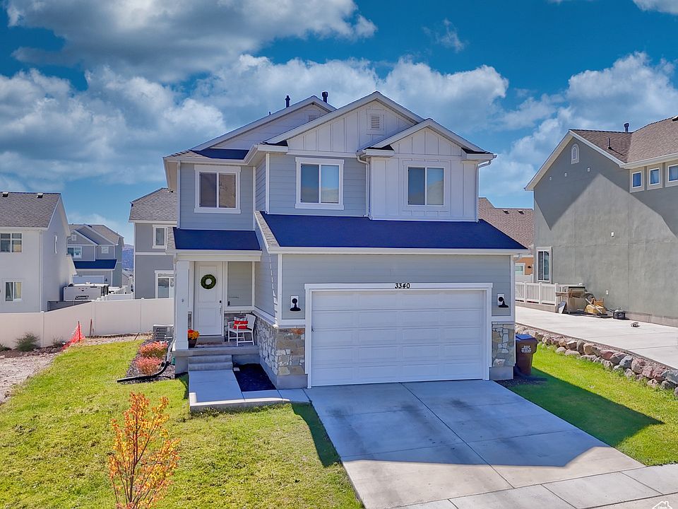 Welcome to the north end of Eagle Mountain-aka the part right by Saratoga Springs, not BFE City Center where your DoorDash driver gets lost and gives up halfway. Oh, and did we mention it's basically next door to the brand new Walmart? That means you can grab milk, ammo, and a patio set in one trip. Living the dream. This isn't just a house; it's your new favorite 2-story life upgrade. We're talking 4 legit bedrooms, 2.5 baths upstairs, AND a laundry room actually upstairs (you know, where the laundry lives-no more cardio carrying baskets up and down). The basement? Blank canvas. Guest suite, theater room, or just a black hole for your 47 Christmas totes from Costco with the yellow lid-your call. Main floor flex: 9-foot ceilings, open concept, and all the upgrades you didn't know you wanted but now can't live without. LVP flooring, modern iron railings, white cabinets, stainless appliances, quartz countertops so nice your Chick-fil-A nuggets will feel fancy. And here's the kicker: no HOA. That means you can paint your house pink, park your RV, and plant whatever flowers you want without Karen from the HOA committee leaving passive-aggressive notes. Walk if you want, but let's be real: by the time you lace up your Hokas, someone else is already moving their sectional in. Open House this Saturday, October 4th, from 12 PM 2 PM.