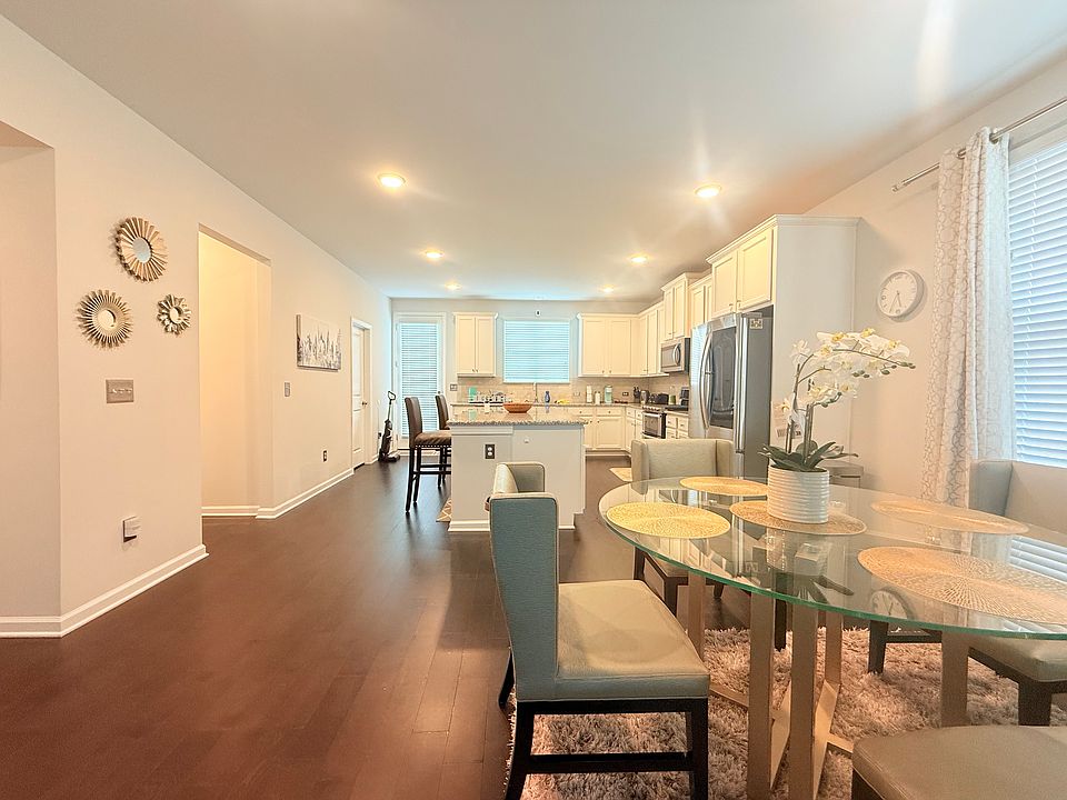 Beautifully furnished and in top condition. This beautiful townhome still looks new! Step into this 3 level home with 4 bedrooms, 3.5 baths with an open concept. Ceiling fans in upstairs bedrooms. All rooms with wall mounted TV's. This home is great for entertaining your guest. The family room overlooks the gourmet kitchen. The kitchen has granite countertops, an oversized island, SS appliances (double ovens, dishwasher, microwave). 3 nice size secondary bedrooms and a Master! Hardwood flooring. Spacious 2-car garage, 9 ft. ceilings, walking trails, lots of shopping, parks, and so much more. Minutes from Johns Creek and Suwanee. Easy access to downtown.
