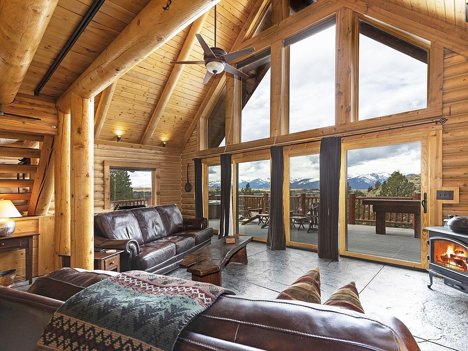 Serene & private 28.9-acre property borders protected lands in conservation easements & ranch land, offering massive 50-mile mountain views for your private sanctuary! This well-maintained, quality log, 3 bedroom, 2.5 bathroom, 2,304 +/- sq ft home is the Montana dream! Beamed, vaulted ceilings & incredible picture windows take in the Bitterroot Mountains and peaceful valley below. Enjoy quiet evenings in front of the fire or enjoy all four seasons from the large decks! The open living, quality kitchen, and dining area is filled with natural light, creating a comfortable, western lodge-like atmosphere. The updated kitchen is sure to please with its ample space and deck access. The primary suite is on the upper (loft) level and includes a double vanity, turn-of-the-century-inspired copper soaking tub, & a tiled shower. The walkout lower level offers 2 additional beds, a bath, living area, & laundry room, perfect for guests to have private space. Year round access & near city services. Watch the joy of Montana unfold before you with elk, deer, turkey, and critters common to the area right from your cozy home! Interested in fishing? The home is just minutes from blue ribbon waters, floating, hiking, horseback riding, ATV fun, and more!