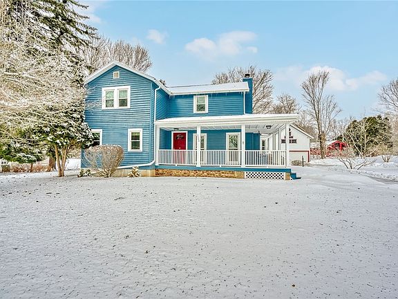 QUAINT FARMHOUSE/CAPE COD BUILT CIRCA 1900 HAS VERY NICE CURB APPEAL WITH A LARGE COVERED WRAP AROUND FRONT PORCH AND A SWING*THE LOT FRONTAGE IS APPROXIMATELY 310 FT. THE LAND THAT IS EAST OF THE DRIVEWAY THAT GOES ALL THE WAY TO BULL SAW MILL ROAD IS PART OF THIS PROPERTY*AS YOU ENTER FROM THE BACK YOU WILL ENTER INTO THE 1ST FLOOR LAUNDRY AND THEN INTO A LARGE KITCHEN WITH A RECESSED CEILING AND 2 SKYLIGHTS* THERE IS A SEPARATE EAT-IN ROOM AS WELL*YOU DON'T LACK ANY STORAGE SPACE WITH THE ABUNDANCE OF OAK CABINETS IN THE KITCHEN ALONG WITH THE OVEN/RANGE AND A REFRIGERATOR THAT ARE ALSO INCLUDED*IN ADDITION, THERE IS A LARGE BUTLERS PANTRY WITH MORE OAK CABINETS*THERE IS A FULL BATH AS WELL*AS YOU CONTINUE THROUGH THE DOWNSTAIRS LEVEL THERE IS A FORMAL DINING ROOM (THAT HAD PREVIOUSLY BEEN USED AS A BEDROOM) WITH A BOW WINDOW AND A LIVING ROOM WITH A WOODBURNING FIREPLACE. RELAX IN THE DEN/FAMILY ROOM WITH A FULL WALL OF SHELVING/BOOKCASE*UPSTAIRS THERE ARE 2 AMPLE SIZE BEDROOMS AND A LARGE FULL BATH*THE BARN/OUTBUILDING HAS A FULL 2ND FLOOR LOFT*THE SEPTIC SYSTEM (CONCRETE TANK) WAS LAST PUMPED IN 2023 AND IS LOCATED APPROXIMATELY 15 FEET WEST OF THE HOUSE/DECK LINE*THE HOT WATER HEATER WAS INSTALLED IN APRIL 2020*ALL TRIPLE PANE WINDOWS BY WONDER WINDOWS ARE APPROXIMATELY 4 YEARS YOUNG*THERE IS ALSO REAR DECK )APPROXIMATELY 24' X 24') WITH BENCH SEATING AND A BUILT-IN WHEEL CHAIR RAMP*THE STONE/GRAVEL DRIVEWAY HAS A TURNAROUND FOR EASY EXIT ONTO RUSH MENDON ROAD*THERE IS A BILCO DOOR FOR EGRESS AND ACCESS TO THE BASEMENT*THERE ARE DROP DOWN STAIRS IN THE LAUNDRY ROOM AREA*WITH SOME UPDATED FLOORING, FRESH PAINT AND YOUR PERSONAL DECORATING TOUCHES YOU WILL HAVE A VERY ATTRACTIVE COUNTRY HOME THAT IS SITUATED ON A 1 ACRE LOT*HONEOYE FALLS-LIMA SCHOOL DISTRICT TOO! DELAYED SHOWINGS BEGIN THURSDAY 2/20/25 ** DELAYED NEGOTIATIONS BEGIN ON TUESDAY 2/25@ 12:00 PM***
