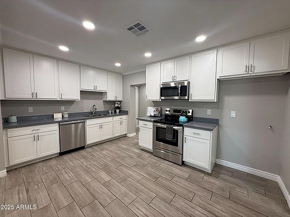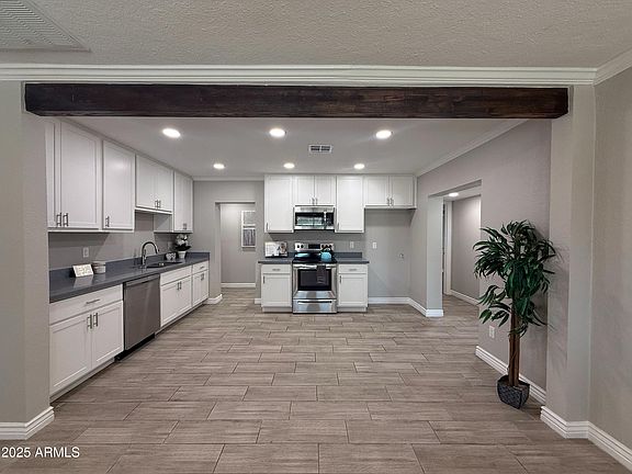 WOW! This move-in ready home features 6 bedrooms and plenty of updates throughout the home! Walk in to a spacious living room filled with natural light. The kitchen has white cabinets, stainless steel appliances, and new hardware. All bedrooms boast newer paint and flooring. Both bathrooms have been updated with newer vanities, counter tops, and fixtures. Enjoy the easy maintenance backyard! No HOA!