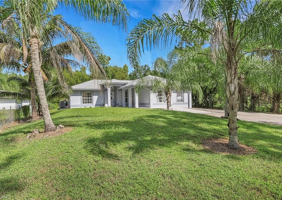 **Back on the market after the buyer was unable to obtain financing—no fault of the seller or the home!** Welcome to your private slice of paradise in Golden Gate Estates! Nestled on 1.14 acres of lush tropical landscape, this beautifully updated 4-bedroom, 3-bath residence embodies the perfect balance of serene country living and refined Naples elegance—just minutes from world-class dining, shopping, and white-sand beaches. Every major system has been thoughtfully updated for peace of mind — including a new roof, water heater, HVAC system, and complete plumbing replacement in 2021, as well as an upgraded electrical panel in 2010. Step inside to discover an inviting open layout with high vaulted ceilings, neutral designer tones, and vinyl flooring flowing throughout. The thoughtfully designed floor plan includes a converted ensuite bedroom, ideal for guests or multi-generational living. Natural light pours through expansive windows, creating a warm and welcoming ambiance in every room. The spacious kitchen seamlessly connects to the main living and dining areas, making it perfect for entertaining. Each bathroom has been tastefully updated, blending modern finishes with timeless appeal. Outdoors, the property offers an abundance of space to relax or expand—with ample room for a pool or even an extension to the home, thanks to the rear concrete pad reinforced with rebar. Mature palms and lush greenery enhance the sense of privacy, creating your own tropical retreat. Located in one of Naples’ most sought-after non-HOA areas, this property delivers the best of both worlds—peaceful estate living and proximity to the area’s most prestigious resorts, golf clubs, and coastal attractions. Whether you’re seeking your forever home or a private retreat close to it all, 3341 2nd Ave SE is a rare opportunity to experience the very best of the Naples lifestyle.