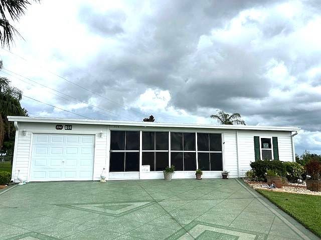 is beautifully maintained 2-bedroom, 2-bath home offers 2,200 sq. ft. of comfortable living space with thoughtful updates and handicap accessibility throughout. Step inside to find laminate flooring throughout and a freshly painted interior. The extra-large master suite features a spacious shower, while the split floor plan ensures privacy for guests. Enjoy year-round comfort in the large, air-conditioned lanai, perfect for relaxing or entertaining. Outside, you'll love the oversized backyard with a large deck, fenced yard, and ramp at the front entrance. Additional highlights include: Double covered driveway & 2-car garage with mini split system Extra-large sheds for storage New roof (2022) & AC (2017) for peace of mind Fully furnished - move-in ready Located in a desirable 55+ community, this home combines comfort, convenience, and accessibility, making it an excellent choice for your next chapter.