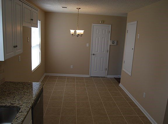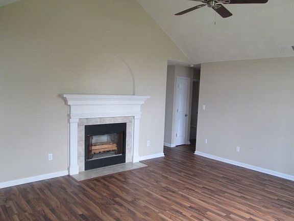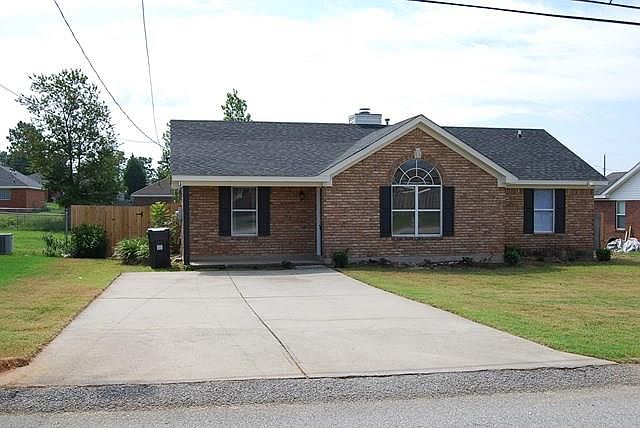 Brick ranch on a flat lot, spacious split bedroom plan, eat-in kitchen with granite countertops, pantry space, tile backsplash, and stainless steel appliances, Living area features vaulted ceilings and wood burning fireplace. Owner's suite is cozy included with a large walk-in closet. All bedrooms include ceiling fans. Outside has large back yard with patio and privacy fence around home.