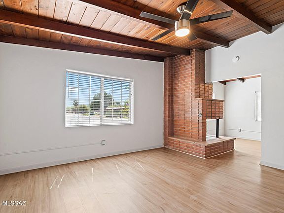Welcome home to style, comfort, & convenience! This updated gem features a fully renovated kitchen & bath, rustic wood ceilings, fresh paint, new flooring, & dual-pane windows throughout. Enjoy the charm of a cozy wood-burning fireplace connecting the great room & kitchen. Bonus upgrades include: new roof (2023), gas water heater (2021), spacious laundry/storage room amenity, mature citrus trees, & a full masonry perimeter wall with gates. Situated on a large lot with R-2 zoning, offering potential for future development or added versatility. 1-car carport + extended driveway for your toys -- & no HOA! Central location. Just minutes from The Loop, Tucson Medical Center, shopping, dining, & much more. See full list of improvements. Seller is a licensed Realtor in the state of Arizona.
