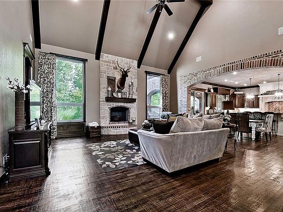 Gorgeous Payne Construction masterpiece with an estate size lot and gorgeous exterior. Features of the home include open living/kitchen, formal dining room with butlers pantry and large private master bedroom with luxurious master bath. Kitchen includes massive islands, pantry, double ovens, and eat-in kitchen. The living room boasts a two story ceiling, custom beams and gas fireplace. Media room with wet-bar, spacious play room and balcony overlooking the backyard. Covered patio with mature trees, built in grill, and audio all perfect for entertaining!