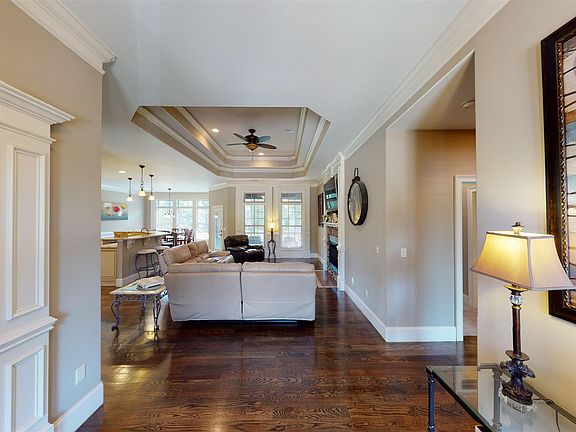 This beautiful Craftsman style home will complete your wish list! All brick home with the accent of stacked stone totally compliments this estate. As you enter the front door of this gorgeous home, you will be in awe of the spacious feeling you get! Hardwood flooring runs throughout the main living area & master bedroom. Carpet in secondary bedrooms & bonus room. Ceramic tile in laundry and baths. Over nine foot smooth ceilings and recessed lighting runs throughout the home. Along with heavy crown molding! Trey ceiling with accented lighting in dining, great-room and master bedroom. Stacked stone gas fireplace compliments the open spacious great-room. The kitchen offers an abundance of cabinets and counterspace for the Chef of the home! Pull out drawers, quiet close cabinets, pantry, upgraded stainless steel appliances, gas stove top and oven! Gorgeous upgraded granite throughout the home. Center island seats 8! Breakfast area is large enough to accommodate formal dining suite! Floor to ceiling windows allow natural light to beam in! Screened-in porch located off breakfast, great-room area. Opens to level patio that over looks large backyard with privacy fencing. Formal dining room is open to great-room. Great space for entertaining! Secondary bedrooms are large in size with each bedroom offering two closets. Plenty of storage! Both bedrooms connect by Jack and Jill bath! Half bath and laundry room on main level. Bonus room would be an excellent workout room, media room, 4th bedroom... whatever your needs may be. Full bath in bonus room. Master bedroom is very spacious and can easy accommodate king size furniture plus some! Master suite features corner soaking tub, separate tile shower with glass door and private water closet. Big walk in closet. Trey ceiling sets the master bedroom off with rope lighting inside the trey. Warm calming wall colors throughout the home. Triple car garage for your vehicles and storage needs. Gas line is stubbed in for outdoor grilling. Stamped concrete patio! Storage under home. All flat screen TVs will convey with home. All furniture is available to purchase.