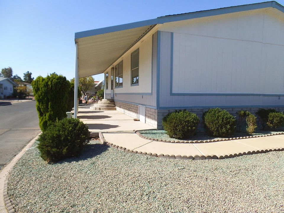 Beautiful 3 bdrm located in adult community. Attractive corner lot with views of Catalina Mtns. Window coverings and appliances stay. Gas-pack heat.Ample parking, large storage sheds. Pets allowed. Low HOA dues include trash, water & sewer and access to large pool, spa, picnic areas and more.Weekly activities and community groups.