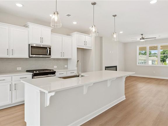 TRATON HOMES KAUFMAN "D" FLOORPLAN READY NOW! Traton Homes Incentive of $5,000 toward closing costs PLUS Washer, Dryer, Refrigerator ($5141 value) and UP to $10,000 closing costs with one of our Traton approved lenders. This beautiful three-story END unit features a rear-entry two-car garage, a large ground-floor bedroom/flex room with full bath—ideal for a peaceful workspace or accommodating guests. Hardwood stairs lead to the main level, where you'll find a spacious open-concept layout. The kitchen offers shaker cabinets, quartz countertops, gas cooking, a large island that comfortably seats four, and a generous pantry. The expansive family room includes a sleek, modern electric fireplace that can provide heat or simply create a cozy ambiance. You'll also find a separate dining area and half bath on this level. Your family room opens to a 10'x18' covered deck, perfect for entertaining or simply relaxing. Hardwood stairs lead to the upper level where you'll discover the king-sized owner's suite with an amazing CUSTOM closet! The primary bathroom offers a large vanity with dual sinks, drawers and large shower with a bench. A secondary bedroom suite on the opposite end of the primary bedroom. The laundry closet is between these 2 bedrooms and offers privacy and convenience. East Park Village checks all the boxes! Its prime location is approximately 1.5 miles to I-75 and 1.2 miles downtown Kennesaw. East Park Village was voted the best neighborhood in Cobb County by Cobb Life Magazine 2024, and USA Today recognized Kennesaw as the best place to live in Georgia. Great amenities include a pool, cabana with fireplace and restrooms and a dog park. Some photos are REPRESENTATIVE of this home, same Kaufman floor plan. DECORATED photos are of the model. All applicants must prequalify with a Traton Homes preferred lender regardless of who you choose for your loan.