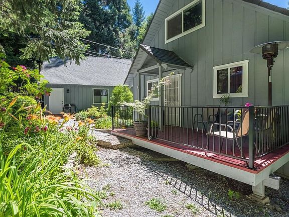 Cute and Cozy cabin located in Gold Ridge Forest. Perfect for full time or vacation living this is a 2-3 bedroom 1.5 bathroom cutie! Newer exterior paint, dual pane vinyl windows in 2014, large kitchen open to soaring pine lined ceiling in living room. Upstairs bedroom with 1/2 bath and loft area. Downstairs can be another bedroom or man cave area. Oversized 2 car garage with cabinets and room for RV parking. Flat driveway and garden area. Close to schools, shopping and freeway.