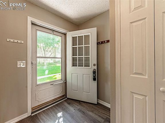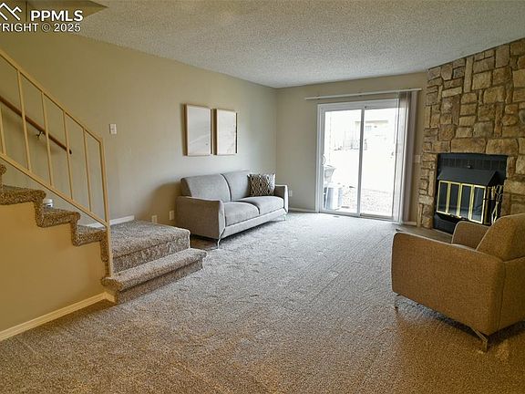 You'll fall in love with this remodeled townhome full of upgrades galore! You'll be surrounded by tall, mature trees and large grassy areas and greeted by new vinyl plank flooring in the entry and kitchen. The kitchen is complete with brand new cabinets, quartz counters, and new 3-tray dishwasher that will be a wonderful place to prepare meals. The dining area and living room are open to the wood fireplace. Brand new carpeting and interior paint throughout make this home move-in ready! The upper level includes a large master bedroom with vaulted ceiling, new ceiling fan, and 2 closets! The 2nd bedroom has 2 windows to enjoy the lovely treed view and a full wall closet. The upper full bathroom has a new double vanity, quartz counters, and more vinyl plank flooring! The basement is a great space to spread out in the family room, 3rd bedroom, 3rd bathroom with shower, more new cabinets and counters, and the laundry area with a dryer that stays. The backyard area is another beautiful green space with patio and shed for extra storage. More great amenities include an air conditioner, many new light fixtures, 6 panel doors. You are just a short walk to the community pool and an entrance to Palmer Park and the wonderful trail system! Come see this beautiful townhome in a lovely setting and close to Academy Blvd.