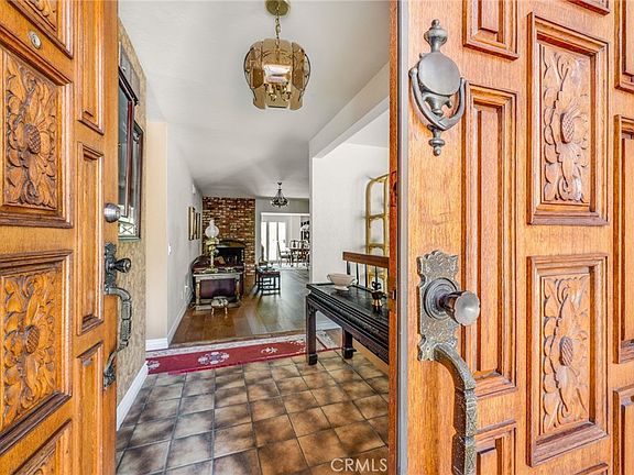 As you walk up the driveway to this lovely home, you are greeted by the flowers and a welcoming fountain in the garden. As you step onto the front porch, you notice the carved Philippine Mahogany doors also present and Philippine Mahogany cabinets throughout the home. Inside, you are on a raised formal tiled entry; step down onto the newly installed pine plank wood floors as you walk through the formal living room with Plantation Shutters staged in the former owner's personal furnishings and a game table area. In the kitchen, you will notice Granite Counters, tile backsplash, Limestone flooring, a good-sized breakfast bar, a Refrigerator, a trash compactor, and a Microwave in addition to the gas stove, oven, and dishwasher. A nice family room with a brick front fireplace for the cooler nights leads into a room added for a formal dining room on a tile floor. Two nice-sized bedrooms, a large primary bedroom on all hardwood floors, and two full baths. The primary bedroom overlooks the patio and terraced rear yard. A real bonus is the 3-car garage, with the 3rd car portion finished and carpeted to be used as a good-sized home office. Laundry in the garage with loads of cabinets for additional storage. Stop by and see this great opportunity in a lovely neighborhood soon.