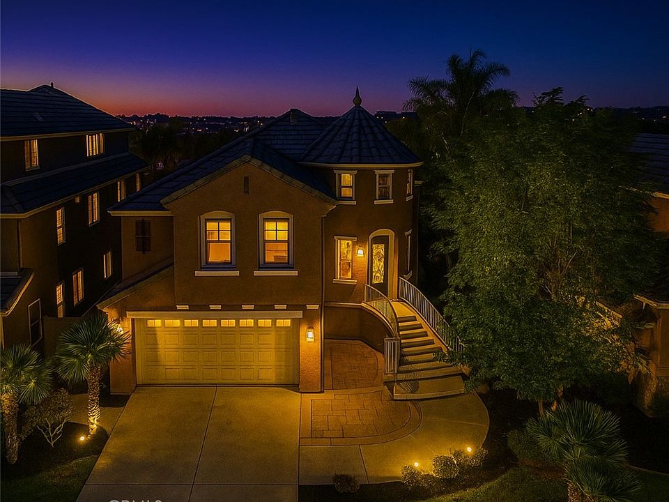 Welcome to this architectural gem nestled in the desirable Chelsea Estates community. This home features fresh new carpet and paint, stunning views, and a balcony where you can catch fireworks displays. The lower level boasts three spacious bedrooms, an office/den, and a bonus/game room that opens to a beautifully landscaped backyard for effortless indoor-outdoor living. The main level is designed for elegance and comfort, with a grand turret-style entry, sweeping staircases, an expansive kitchen, luxurious primary suite, and sophisticated living spaces perfect for entertaining or relaxing.