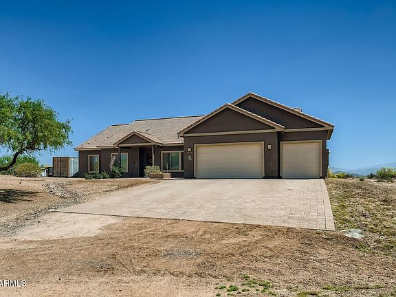 Enjoy stunning million-dollar views from this beautiful custom home on a private 1-acre cul-de-sac lot with no HOA and a private well. Surrounded by Granite Mountain Preserve and National Forest, it offers peaceful scenery and endless outdoor activities. Inside, the inviting great room and gourmet kitchen—with Wolf cooktop, 22'' grill, and large granite island—are perfect for gatherings. A split floor plan adds privacy, with tile floors and 16' dual sliding doors showcasing desert views. The spacious owner's suite features a large custom shower. With room for entertaining and horses, this home offers comfort, beauty, and tranquility.
