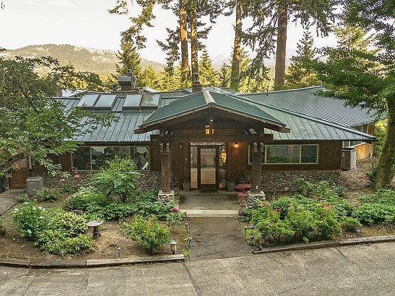 This one of a kind close-in town property sits on 12.1 acres w/amazing views of Mt. Pisgah & has lots of big trees. The 2790 sq ft main house features vaulted ceilings, skylights & nice plank vinyl throughout, with carpet in 3 of the 4 bedrooms. There is large woodstove in the living room that nicely heats the house & a gas fireplace in the primary. The 600 square foot detached guest house is only 20 feet from the main house & can be used as a large primary bedroom giving the house a total of 5 bedrooms. This room could also be used as a theatre room, bonus room, for guests or even as a nightly Air BnB. The guest house Includes a wood stove, clawfoot tub in the bathroom & sauna! Both houses have been recently remodeled throughout including all 4 bathrooms w/new granite counter tops, cabinets, & new tile in the showers. The kitchen was also recently updated w/newer granite & appliances. One of the main features of the house is the large indoor swimming pool w/diving board that is 10 feet deep in the deep end. The large indoor pool room features wrap-around sliding glass doors to the decks w/numerous skylights. There is also plenty of room to use it as an exercise room or additional sitting area w/two plasma TV’s that are included. Sunbathe & barbecue on the large 1200 square foot newly refinished wrap around deck. This property also boasts your own full-sized tennis court that is great for pickle ball players as well! Large 3 car detached garage w/2nd story loft for storage. If you’re a gardener, you will enjoy the large fully fenced garden w/raised beds. The property has plenty of apple trees, cherry trees, pear trees, grapes & plums. There is a full sprinkler system for the grass yard & landscaped perimeter of rhododendrons, Japanese maples, ginko biloba trees & many other flowering shrubs. Property has 2 entrance gates, one drives to the garage & house & one down to the tennis court & pond that also features extensive rock walls & a small yard area.