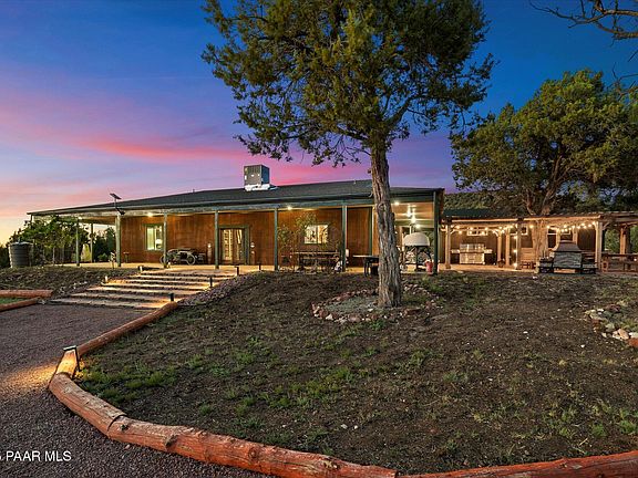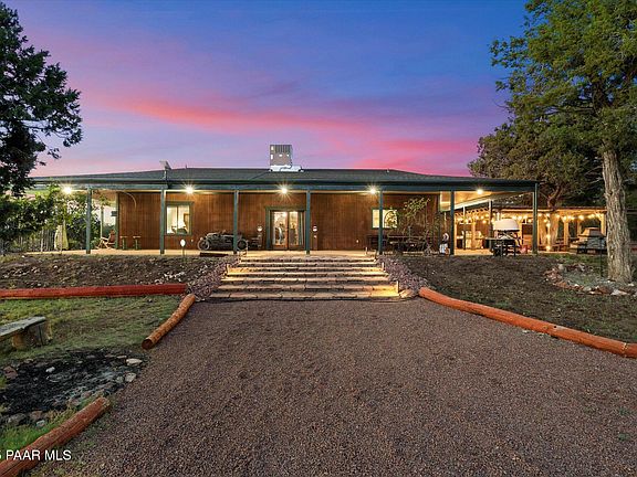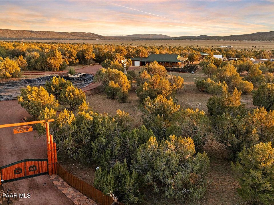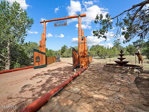 Luxury Ranch in Northern ArizonaA Collector's Paradise, A Horseman's Dream, A Desert Sanctuary of Freedom and BeautyElevation: 5,310 ft, No HOAINTRODUCTIONWelcome to one of Northern Arizona's most remarkable luxury ranches, a property that embodies freedom, artistry, and self-sufficiency. Perfectly situated in the picturesque high desert of Seligman, Arizona, this 35.85 +/- acre estate blends timeless Western character with resort-style living.Every inch of this property is a masterpiece -- fully furnished with first-class, collector, and historic artifacts, curated to reflect Arizona's rugged spirit and refined soul.Enter through a grand gated drive lined with Red Rebel stone, flanked by bronze elk and horse statues, and centered around a dramatic fountain -- the kind of entry that announces prestige, privacy, and pride of ownership.The main residence, constructed with straw-bale architecture for exceptional thermal efficiency, spans approximately 2,916 sq ft. Inside, artistry meets function:a massive marble island anchors the chef's kitchen, finished with copper elk backsplash, custom hood, ZLINE gas range, Wolf countertop oven, espresso machine, and drawer-style microwave.Both bathrooms are transformed into spa sanctuaries, featuring claw-foot tubs, waterfall showers, illuminated mirrors, and Toto bidet toilets.The living room glows with the warmth of a pellet stove, surrounded by fine art, rare pottery, and exotic taxidermy that celebrate life in the American West.An adjacent laundry and utility suite houses a Smart-TV refrigerator, ice-cream freezer, and AED system -- a thoughtful touch emphasizing safety and modern comfort.Step outside to an entertainer's paradise: a triple pergola custom built from cedar around a 100-year old twin-trunk juniper, illuminated by string lights over flagstone flooring, featuring a commercial BBQ, wood-fired pizza oven, a rotisserie big enough for a 100-lb pig, outdoor fireplace, and teak dining sets. Complementing the main home is a 3,840 +/- sq ft fully furnished bunkhouse -- a two-story guest lodge offering 3 bedrooms, 2 baths, a covered front porch, and a balcony off the primary suite crowned by a copper-lit cupola that glows at night. Below, a breezeway tack room and storage area open to 12 stalls, a garage, and ample space for animal care, feed, and equipment.Nearby stands the 1,780 sq ft medical and breeding facility, complete with head-gate chute, squeeze system, and dedicated areas for veterinary care, branding, and animal birthing.All structures have been meticulously remodeled with new roofing, paint, lighting, and windows, preserving the ranch's integrity while infusing modern sophistication.RANCH FEATURESFully Fenced 35.85 +/- Acres with industrial oil-pipe fencingGrand Entry & Fountain - gate with lighting, statues, and stoneworkPrivate Pond with 30-ft pier, windmill, and Green Egg BBQ for lakeside entertainingHay Barn: 80′ 20′ 20′ high - with automatic watering for horses and livestockOutdoor Roping Arena, Round Pen, Hot Walker, and 12 rodeo lights for nighttime riding.4 Elevated Shooting Platforms (10 ft high) with stargazing deck and enclosed outhouseUnderground Water Piping to all troughs and pasturesTwo 20-ft Convex Storage Containers with sweeping roof between the two plus one 40-ft Convex Storage containers, additional garages, tools, generators, off-road Segway, and two electric mountain bikes, on side of garage there is a whole home Generex generatorANIMAL & LIVESTOCK HIGHLIGHTSThis property is a living, breathing ranch operation:Buffalo herd: male, female, and new calfAsian Water Buffalo pairFour Watusi cattle with signature sweeping hornsFive Red Cows from the renowned Louis Vuitton Ranch in TexasFive Scottish Highlanders various coloTen horses, 1 mini- pony, 1 mini- donkey, twenty head of cattle, and one mini Zebu