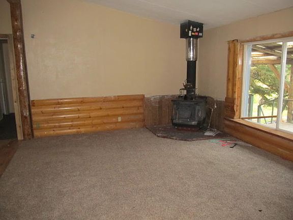 Great setting for the 3 bdrm, 2. bth house on 1.23 acres. Log siding on two sides. Wood burning fire place. Updated kitchen and appliances, laundry room and pantry, Great landscaping potential. Close to boat ramp and Waitts Lake.