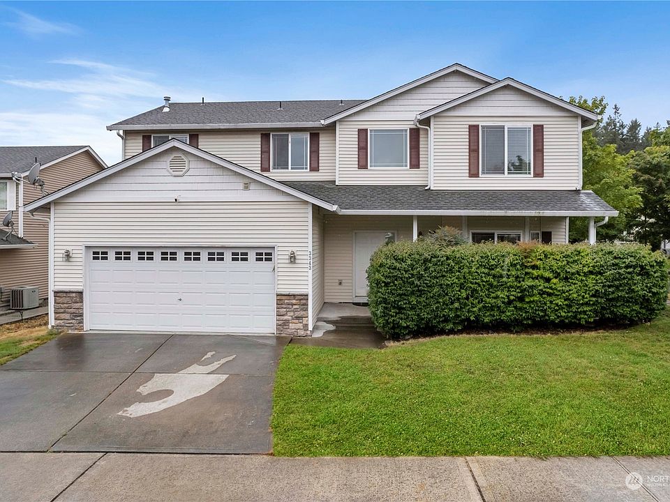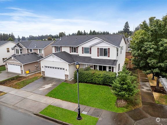 Beautiful 4 bdrm home in Lacey on a corner lot! Move in ready. Open floor plan with high ceilings covered front porch. Large living and dining room is great for entertaining. Spacious great room opens to the kitchens with SS appliances, breakfast nook & pantry. Fully fenced backyard and good outdoor space. Upstairs primary suite with attached 5-piece bath w/soaking tub & spacious walk in closet. Upstairs laundry. Central AC & a community park. Great location mins to restaurants, shopping, I-5 & JBLM.