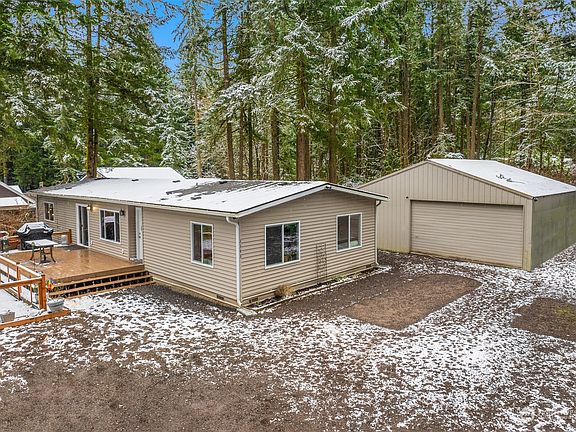 Charming and private, this 3 bedroom, 2 bath home sits on a spacious corner lot, offering 1,440 sqft of comfortable living space. Recent updates include a newer roof, siding, flooring, and windows, ensuring modern convenience and style. A new custom fence with a secured motorized gate to the driveway provides both security and curb appeal. The 672 sqft detached 3-car garage/shop is perfect for vehicles, storage, hobbies, or a workshop. Surrounded by mature trees, this property offers both privacy and a serene setting while still being conveniently located. Don’t miss this rare opportunity!