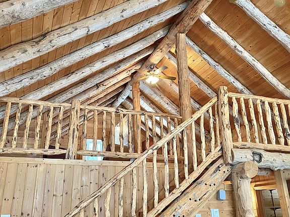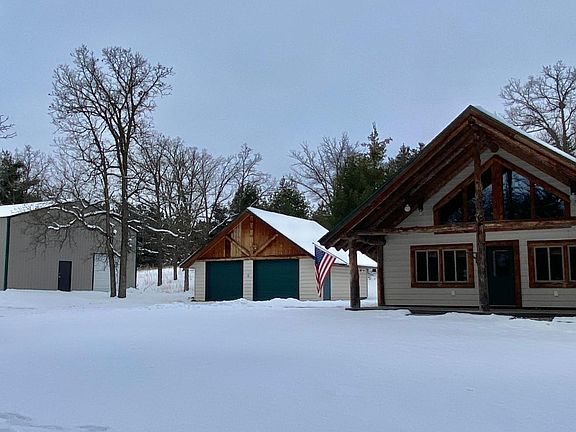 Frazee, MN- Nestled in 3 wooded acres this charming 2 bed 2 bath hybrid log and frame home features a beautiful two story log cathedral ceiling, pine tongue-and-groove paneling, large loft, covered porch, and wall of south facing windows to capture the sun’s warmth & light. Enjoy easy main floor living- open floor plan, primary suite w/ private bath, office, and large laundry/utility room. The loft overlooking the great room (currently used as 2nd bedroom) provides additional space for sleeping, studying, or playing. In floor boiler heat, 2x8 walls w/ sheathing inside and out, and high end beveled steel siding. Detached 2+ stall garage and large shop provide multiple storage options. Idyllic weekend getaway destination or year-round home.