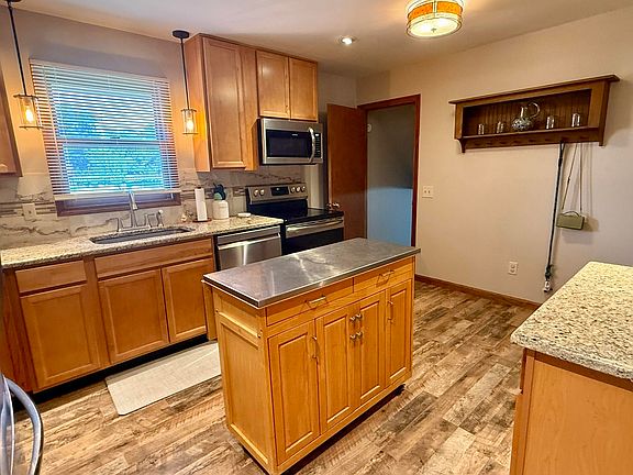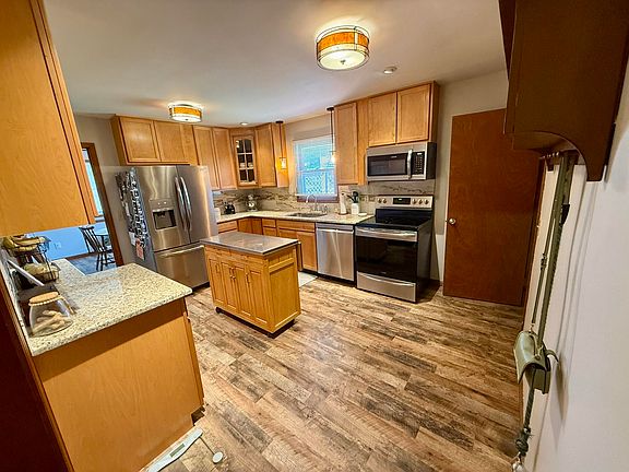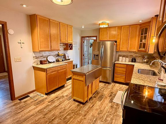 - Features: Walk-Out Access, Window Treatments, Kitchen Island, Eat-in Kitchen, Wood Cabinets, Recessed Lighting, Plank Flooring