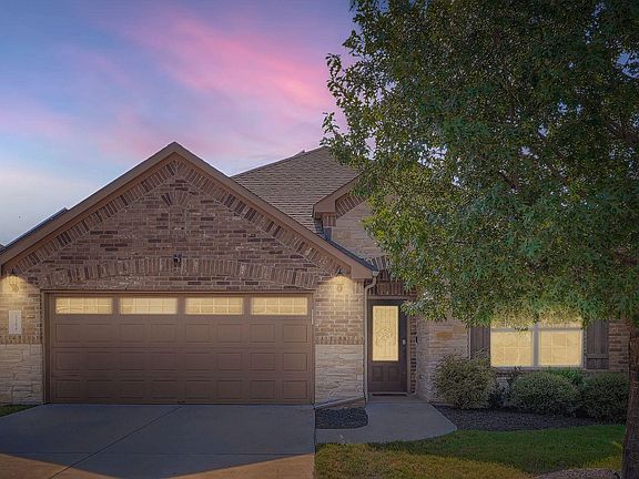 Absolutely stunning single-story home in the highly sought-after Paloma Lake community! Perfectly situated on a premium corner lot, this residence blends timeless elegance with modern convenience. The exterior showcases a sophisticated mix of stone and brick, setting the tone for the quality and style you’ll find throughout. Step inside to discover an open and airy floor plan, enhanced by rich hardwood-style tile floors that flow seamlessly through the main living areas. Designed for both everyday living and entertaining, the spacious layout offers multiple gathering spaces and thoughtful upgrades at every turn. This home boasts over $100K in upgrades, including fully paid solar panels for energy efficiency, a powerful 24kW Generac whole-home generator (with 20+ year warranty), a complete Vivint Smart Home system, a custom outdoor deck with pergola, and an epoxy-finished garage floor. A built-in office nook with desk provides the perfect work-from-home/study setup. The chef’s kitchen is the true heart of the home, featuring an oversized island with seating, granite countertops, shaker-style cabinetry, designer tile backsplash, stainless steel double ovens, and plenty of storage. It opens effortlessly to the living and dining areas, creating an inviting space for family meals and entertaining guests. The luxurious owner’s retreat is a private haven, complete with dual vanities, his-and-hers walk-in closets, and a spa-like walk-in shower with dual shower heads. A thoughtfully designed guest suite with an attached full bath makes an ideal in-law suite or private space for visitors. Outdoors, you’ll enjoy a covered patio overlooking the spacious yard, plus the extended custom deck and pergola- perfect for relaxing evenings. With 4 bedrooms, 3 full bathrooms, and every detail carefully considered, this home is truly move-in ready. Offering energy efficiency, modern technology, and a functional yet elegant design, this Paloma Lakes gem is a must-see!