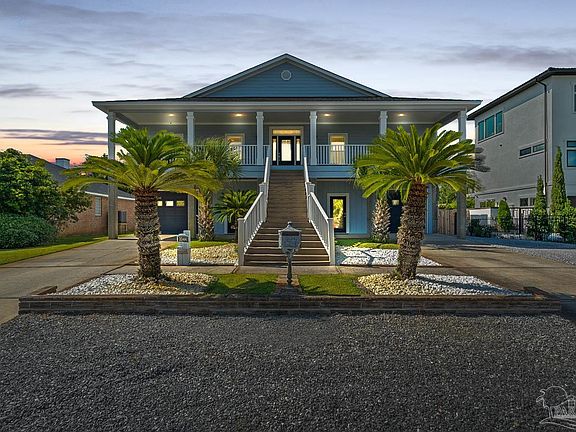 Luxury Living in Gulf Breeze. Welcome to your elevated slice of paradise in the coveted Santa Rosa Shores neighborhood. This beautifully designed 4-bedroom, 2.5-bath luxury home offers nearly 3,000 square feet of refined living space, perfectly positioned blocks from the boat ramp and overlooking peaceful water views. Built on sturdy concrete pilings, this residence blends thoughtful design with strength, style, and sophistication. Enjoy the beautiful sunrise or sunsets overlooking the intercoastal waters. Downstairs, a sprawling covered area offers endless potential—store your cars, jet skis, or golf cart with ease, or transform the space into a state-of-the-art gym, a shaded play zone, or the ultimate party pad. When the sun sets, head poolside to unwind under the stars in your private outdoor oasis. Inside, you'll find a light-filled open-concept floor plan made for entertaining, with rich wood floors flowing throughout and creating a warm yet polished feel. The kitchen, dining, and living areas connect seamlessly, making every gathering—from casual family meals to elegant dinner parties—feel effortlessly inviting. A whole-home generator ensures peace of mind year-round, while the home’s location places you minutes from top-rated schools, white sand beaches, and the vibrant heart of Gulf Breeze. Whether you're raising a family or simply seeking an elevated coastal lifestyle, this home offers it all—comfort, elegance, and a front-row seat to everything that makes the Gulf Coast so special.