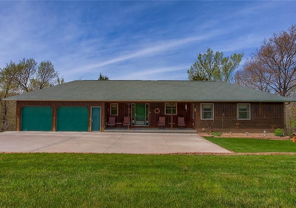 If you've been looking for a beautiful recreational country property with an abundance of whitetail deer, turkey and mushrooms, you need to see this property! 12.25 Acres of mature hardwood timber in Dallas County on pavement. Rural water and access to high-speed internet. The land has areas that could be converted to wildlife food plots. The walk-out ranch is nearly 3200 sf finished. The home features an over sized main floor master suite with BainUltra tub and walk-in closet. Enjoy the open concept kitchen and vaulted living room with gas fireplace and large windows overlooking the forest. The lower level features a second living room area with built in bar, 2 bedrooms, full bathroom and plenty of storage. Walkout on a snowy evening and enjoy the hot tub that is included.