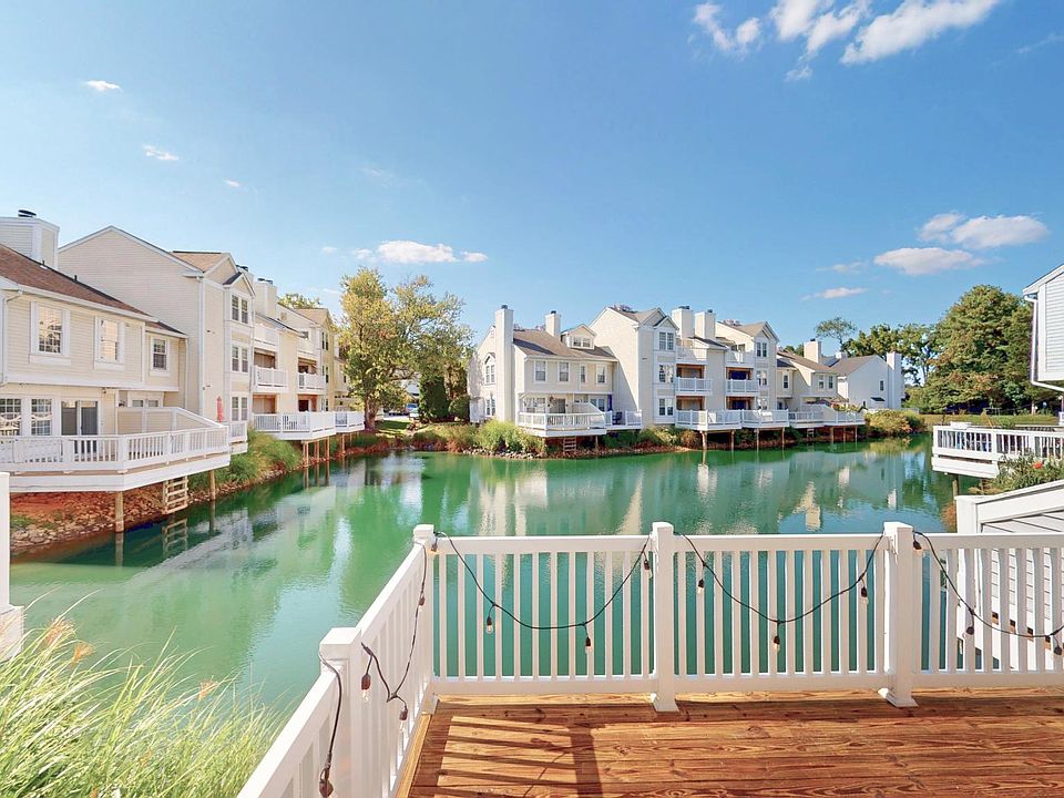Lovely 2 bedroom 2.5 bath water front townhome! You'll love the remodeled kitchen and baths and beautiful hardwood floors! The main level is open and bright, with a cozy woodburning fireplace! The large deck sits right on the water and has plenty of room for sunbathing, barbecuing, and dining! Upstairs, there are two spacious bedrooms, each with a private full bath and lots of closet space. The washer and dryer are upstairs, too. The roof is scheduled to be replaced by the condo association within the next 6 months. Parking is a dream here - there are tons of unmarked spaces right in front of the house. You'll love this community - with a swimming pool, dog park, and tennis courts, plus an active community association. The location is also terrific - close to seven corners, skyline, shopping, restaurants, and transportation. Just 2.5 miles away from the East Falls Church subway stop. It's time to make your move! OPEN Sunday, September 28th from 2 to 4 pm. Come see!