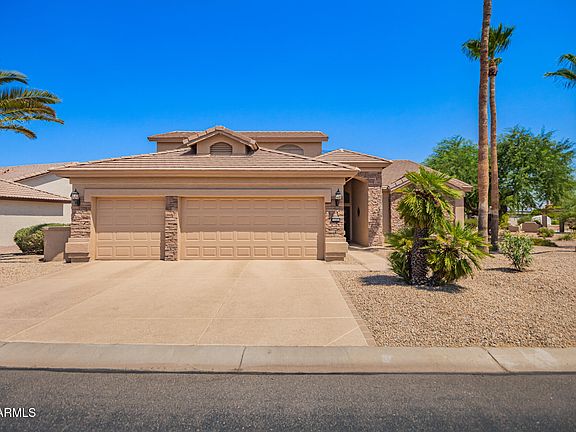 Large luxury home featuring 3 bdrms, den & 2-1/2 baths on gorgeous common area lot. The backyard features an extended patio, built-in grill, new patio fans & accent lights and is perfect for entertaining or relaxing. Primary suite conveniently located on main floor with walk in shower, soaking tub & his/her closets; 2 bdrms, full bath on 2nd floor provides privacy for guests. The kitchen has been refreshed with white cabinets, slab granite counters, new stainless steel appliances, sink & faucet. New cabinets & granite counter tops in all bathrooms; new LVP flooring, carpet & baseboards throughout home; repainted interiors, new roof (underlayment), new HVAC (main floor). Located in the award-winning PebbleCreek resort style community with world-class amenities. This home is MOVE-IN READY!
