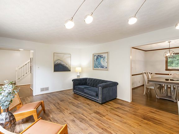 Features a living room and dining area for meals or gatherings, plus a great room for relaxing. The kitchen is fully equipped with modern appliances, and there's a convenient half bath on this level.
