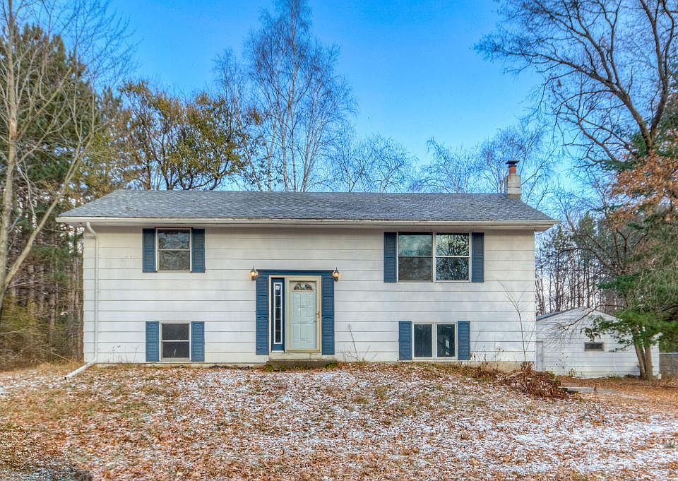 Gorgeous secluded setting with winding driveway for this home on 8 acres. 30x40 garage and 30x40 pole building for plenty of storage for your toys. Large deck extends across the back of the home. Lower level walks outs on the south side with walk to garage. Spacious kitchen with tile floor and oak cabinets. Home needs cosmetic updates but is otherwise solid.