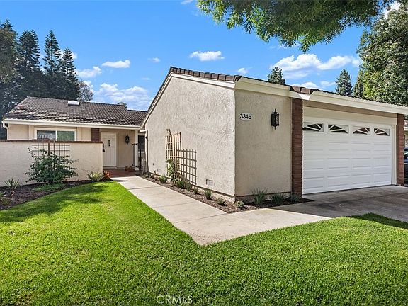 Welcome to this highly desirable 3-bd/2-ba Andaluz model home, located in a quiet, secluded cul-de-sac location in the highly desirable Laguna Woods Village for 55+ active seniors. This unit is located in a prime location near Gate 10 and Clubhouse 5. A stunning 3-bedroom, 2 bathroom layout boasting 1,381 SF of living space, this residence is sure to please! As one steps inside, one is greeted by neutral tile flooring, which extends to the living room and kitchen areas. The spacious living room features a charming wood-burning brick fireplace. The living room space flows into the adjacent, spacious formal dining room, including a wet bar for entertaining. From the living room, one can step out to a beautiful patio surrounded by open grass areas and landscaping, including beautiful mature trees, perfect for enjoying the outdoors. Kitchen appliances were upgraded 2 years ago, and the kitchen sink and countertop were upgraded barely 2 months ago. Luxury vinyl plank (LVP) flooring was installed in all 3 bedrooms 2 years ago. The master bedroom suite features a large dressing area, with mirrored wardrobe doors and a private sliding door to the quiet, serene backyard. Oversized double garage provides ample space for parking and extra storage. Residents of Laguna Woods Village enjoy a plethora of amenities, including golf, tennis, pickleball, seven clubhouses, 5 swimming pools, equestrian center and so much more! Please go to lagunawoodsvillage.com to find out more about Laguna Woods Village, and view the Buyer financial requirements outlined therein.