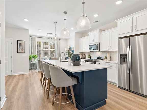 TRATON HOMES KAUFMAN "D" FLOORPLAN READY NOW! Traton Homes Incentive of $5,000 toward closing costs PLUS Washer, Dryer, Refrigerator ($5141 value) and UP to $10,000 closing costs with one of our Traton approved lenders. This beautiful three-story unit features a rear-entry two-car garage, a large ground-floor bedroom/flex room with full bath—ideal for a peaceful workspace or accommodating guests. Hardwood stairs lead to the main level, where you'll find a spacious open-concept layout. The kitchen offers shaker cabinets, quartz countertops, gas cooking, a large island that comfortably seats four, and a generous pantry. The expansive family room includes a sleek, modern electric fireplace that can provide heat or simply create a cozy ambiance. You'll also find a separate dining area and half bath on this level. Your family room opens to a 10'x18' covered screened deck, perfect for entertaining or simply relaxing. Hardwood stairs lead to the upper level where you'll discover the king-sized owner's suite with an amazing CUSTOM closet! The primary bathroom offers a large vanity with dual sinks, drawers and large shower with a bench. A secondary bedroom suite on the opposite end from the primary bedroom. The laundry closet is between these 2 bedrooms and offers privacy and convenience. East Park Village checks all the boxes! Its prime location is approximately 1.5 miles to I-75 and 1.2 miles downtown Kennesaw. East Park Village was voted the best neighborhood in Cobb County by Cobb Life Magazine 2024, and USA Today recognized Kennesaw as the best place to live in Georgia. Great amenities include a pool, cabana with fireplace and restrooms and a dog park. Some photos are REPRESENTATIVE of this home, same Kaufman floor plan. DECORATED photos are of the model. All applicants must prequalify with a Traton Homes preferred lender regardless of who you choose for your loan.