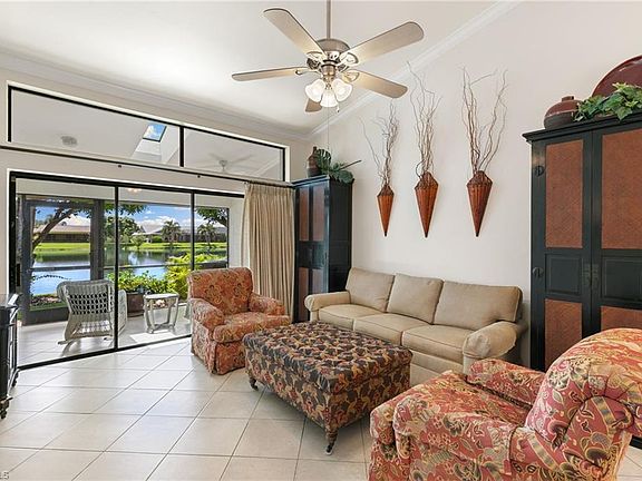 Highly sought-after lake view attached villa in the desirable community of Regent Park. This south-facing 2-bedroom, 2-bath home offers beautiful sunset views and has been extensively updated throughout. The kitchen has been completely renovated with new appliances, cabinetry, countertops, flooring, and a built-out pantry. Both the primary and guest bedrooms feature custom closets, while the bathrooms have been upgraded with quartz countertops, new vanities, sinks, faucets, flooring, a new shower with glass door in the primary bath, and a new glass door in the guest bath. Additional updates include custom shelving in the laundry room, plantation shutters throughout, a built-in bookshelf in place of the former wet bar, a water filtration system installed in 2021, and brand-new automatic hurricane shutters on the front of the unit in 2025 for added peace of mind. The community has also undergone recent improvements with a new roof, awnings, unit numbers, and carports completed in 2023. Regent Park residents enjoy access to a community pool, tennis courts, and pickleball, all in a convenient North Naples location close to beaches, shopping, dining, and entertainment.