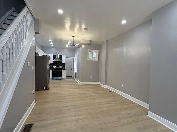 This home was fully renovated in 2025 and offers a fresh, modern feel throughout. The beautiful 3-bedroom, 1-bath layout features an open-concept first floor with a spacious living and dining area flowing into a gourmet kitchen. The kitchen is outfitted with sleek modern cabinets, granite countertops, a stylish tile backsplash, and brand-new high-efficiency appliances, including a dishwasher, gas range/oven, range hood, and sink with garbage disposal. Recessed lighting brightens the entire first floor. Just beyond the kitchen, you’ll find a convenient laundry room and a door leading to the backyard. Upstairs, you’ll discover three comfortable bedrooms and a hall bathroom. The home boasts new flooring throughout, a brand-new HVAC system installed in 2025, a roof replaced just five years ago, and newer windows for added energy efficiency