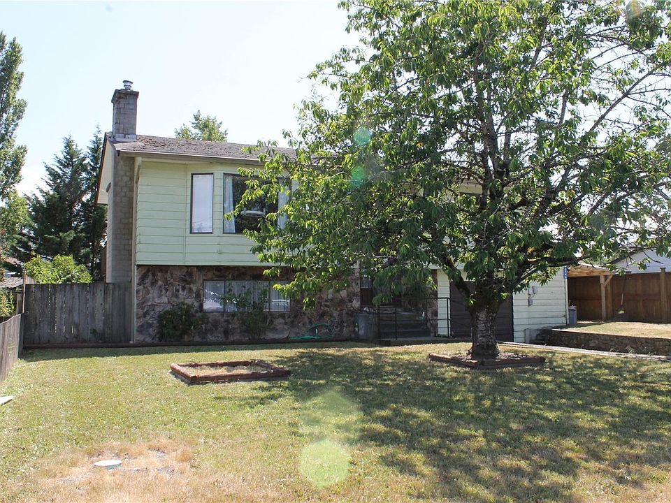 Family Home Located Directly Across From Hawkes Boulevard Park. This split level 4 bedroom, 2 bathroom home offers 1,748 sq ft of living space, big sunny, partly covered deck & plenty of parking. There is a nice big living room with fireplace and mountain views, dining area and kitchen with lots of cupboard space, newer appliances and access to the back deck. There are 2 bedrooms on this level with the primary bedroom having French doors to the covered deck. Downstairs there is a big rec/family room with a woodstove to keep everyone warm. 2 further bedrooms, 3 piece bathroom & laundry room finish off this floor. There is a garage, workshop, shed & space for your RV or Boat. The South facing backyard is fully fenced and there is plenty of storage under the deck. Other features include laminate flooring & ductless heat pump. Close to schools, shops, restaurants, trails, ball field & soccer field this is a great location. Ready for the next family to make memories.