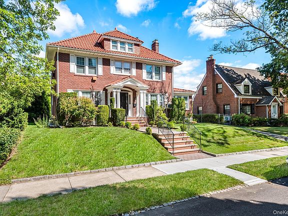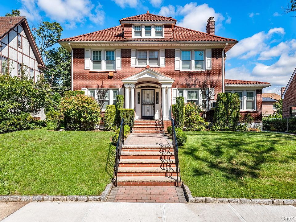 This timeless, all-brick center hall colonial, crowned with a distinctive clay tile roof, showcases enduring craftsmanship combined with thoughtful modern updates.