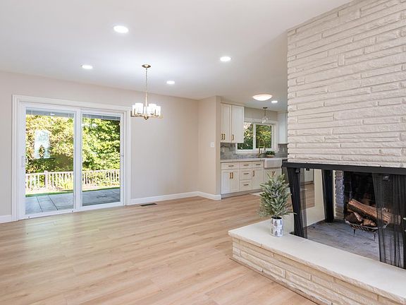 Striking wrap-around fireplaceModern finishes and appliancesAttached garageEnd of a cul-de-sacOpen-concept floor planNewly updated kitchen