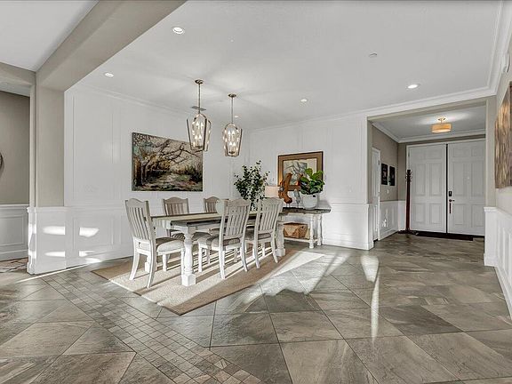 The front yard has been professionally upgraded with rock landscaping, turf, and custom trees, adding fantastic curb appeal. The spacious 3-car garage features epoxy flooring, providing a sleek and durable finish.