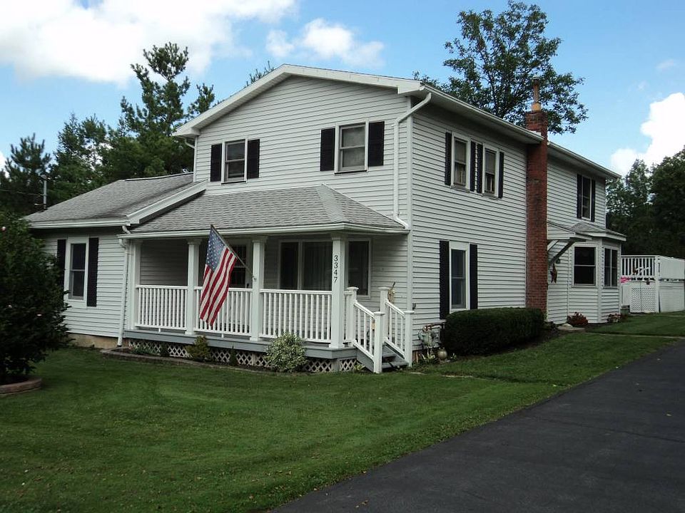 Town: Town of LivoniaNew furnace & central air, hot water tank, bathrooms, carpet, electric, plumbing. Hardwood floors (3/4") in kitchen, dining & living rooms. Roof 13 years old. Public water & sewer. 2 miles off 390. Stamped concrete patio with hot tub. Power sunsetter awning over rear deck. 20' X 30' barn 2 floors with 19' X 15' work shop on rear of barn both have electric. Paved driveway 19'X 110'. Shed out back of work shop with tree house. 33' X 18' pool with deck. Front porch 6' X 15'.
