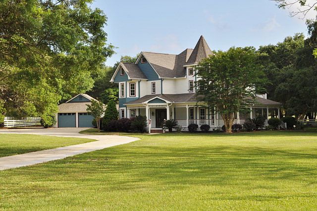 Victorian home nestled in beautiful live oaks with wrap around porches.Home has 15 acres fenced pasture,4 stall barn w/studio apartment,stocked pond with gazebo.updated,granite countertops,new tile floors/kit.and baths.Den,living room,dining room and office boast Brazilian Teak floors.The office has walnut paneling.Luxurious master bath whirlpool tub & sauna.Pool house,heated 24x24 pool w/bathroom