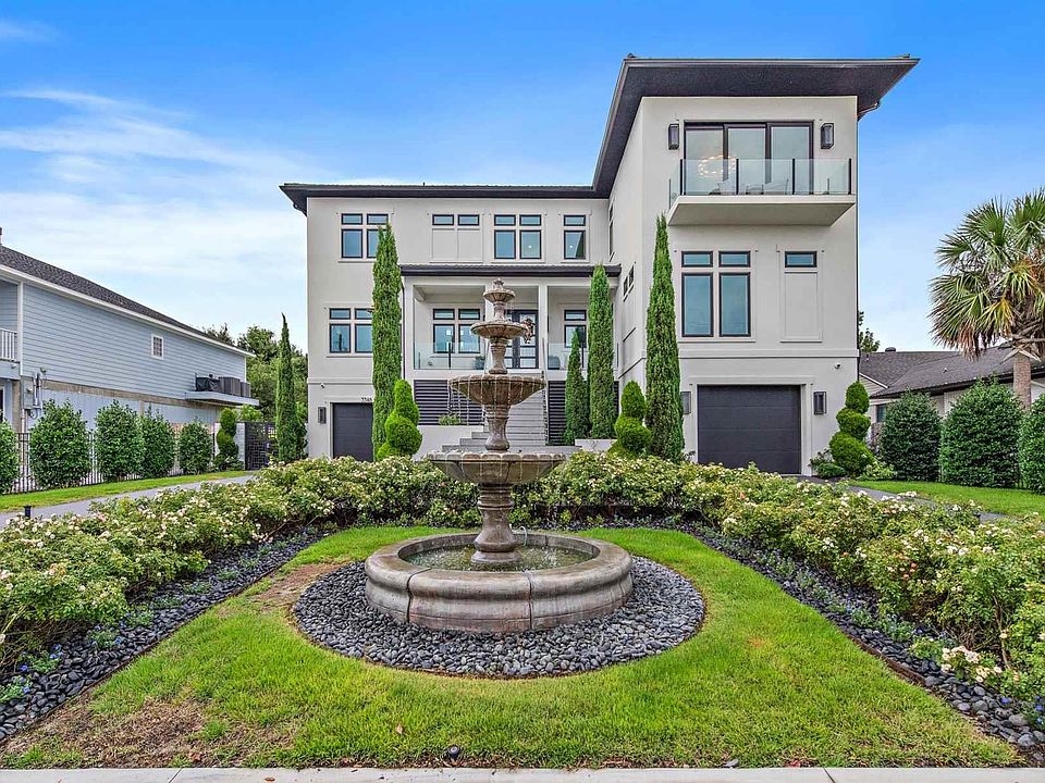 LUXURY Contemporary home steps from Tiger Point Country Club. Solid ICF (Insulated Concrete Form) construction ensures superior strength, insulation, and storm resistance. Distinctive Mediterranean-style metal roof for longevity and aesthetic appeal. Unmatched elegance, innovation, and security nestled within the prestigious Intracoastal Waterway. Your drive up made easy with semicircular driveway that accesses two garages. Stairs elevate you to main Double-door entrance leading into a breathtaking open living room that can be admired from the "catwalk" on third level. Kitchen boasts WOLF stainless steel appliances including gas stove and sub-zero fridge. All bedrooms with closets but master closet takes the cake with its Dressing room plus an adjacent yet ample walk-in for the 'other half'. Brightly lit with 56 oversized windows (bedrooms have remote blinds). If you entertain, this will be the GO-TO spot. Backyard fit for any party along the saltwater pool, deck, and exterior/covered kitchen area. Surprise entertainment area on bottom floor with bar and game room and its own private bathroom, you have to see to appreciate. Garage set up to take care of your toys as well as storage. Did I mention wet bar in upstairs living room, huge laundry with 4 machines, wine fridges/coolers, beautiful landscaping and sprinkler system, light fixtures/chandeliers (with remote control), speakers, fireplace/heaters...? Plus, fully enclosed with a fortified brick privacy fence along sides and back of home. All this and not done! Features are so many that is hard to list all here. But rest assured - you will be WOWED with this architectural masterpiece!!! Must come see it to Believe and appreciate it, so make the appt and tour this beautiful home. There is a public boat launch close by, and pickleball courts and playground walking distance.
