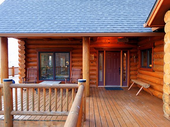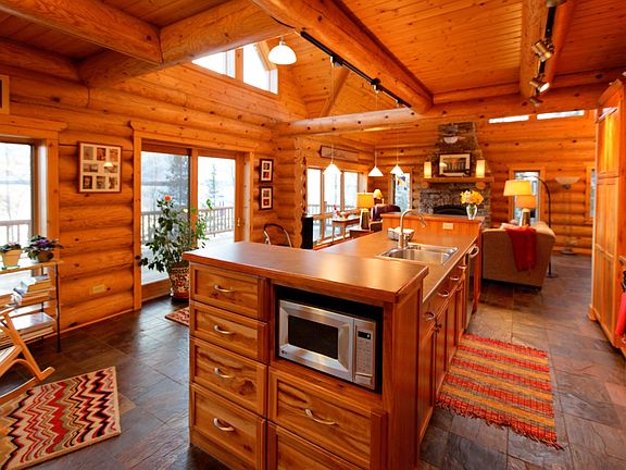 Custom log home on Madeline Island, built by Hiawatha Log Homes and featured in Log Home Living. Outstanding construction and luxury features throughout. View of five of the Apostle Islands to the west, superb private location at the end of Stockton Road.