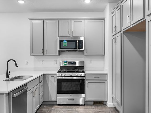 Stylish kitchen with stainless steel appliances & quartz countertops
