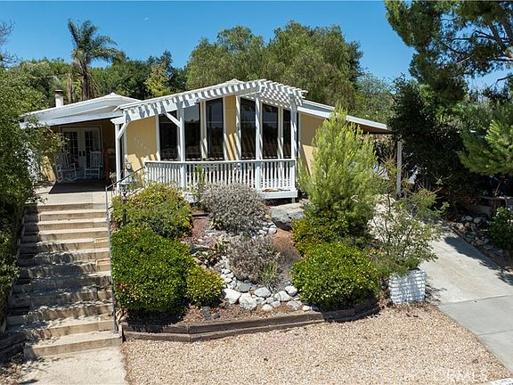 Welcome to 33487 Harvest Way, a charming home located in the heart of the sought-after THE FARM community in Wildomar. This inviting residence is situated on a generous 8,276 square foot lot, and uniquely, this manufactured home is permanently affixed to your own land. With easy access to both the 15 and 215 freeways, this home offers seamless commuting options while providing an escape into a family-friendly community filled with abundant amenities. Spanning 1,800 square feet, this home features 2 comfortable bedrooms and 2 well-appointed bathrooms. The spacious living room, accentuated by a cozy fireplace, provides a warm setting for family gatherings and relaxation. An expansive entryway doubles as a den or office, ideal for those working from home or in need of a versatile utility room. The convenience of an inside laundry room further enhances the everyday functionality of this home. The exterior is equally impressive, offering two sheds for additional storage, there is plenty of room to create your own backyard oasis. The property boasts a covered carport that accommodates 2 or more cars, ensuring ample parking space for residents and guests alike. The elevated property offers a lovely view of the rolling hills, adding a tranquil touch to your living experience.