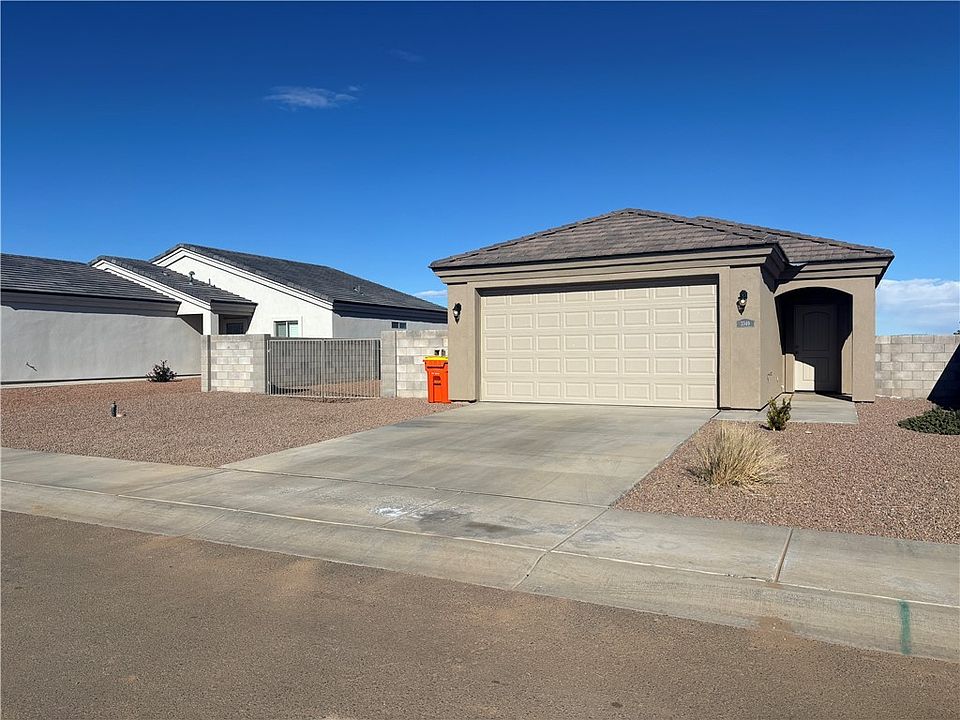 Build in 2024, Model of 1175 square foot new 2x6 construction home with synthetic stucco and tile roof with double-pane windows. The front yard is fully landscaped and has an RV gate access to the back for storing your travel home, boat... The home is set up with electric heating system, range, water-heater and electric cooling system that will keep you comfortable all year around. The 3 bedrooms 2 bathrooms 2 car garage is perfect in the inside, the kitchen has granite counter tops and stainless steel stove, microwave and dishwasher. The open floor plan is perfect for entertaining guests and the vaulted ceilings create a wonderful open space. The home is accented with nickel fixtures in both lighting and plumbing. Tile flooring is placed in living room, dining room, kitchen & bathroom and carpet in all three bedrooms for a more elegant look, walk- in shower in master bathroom, walk-in closet in master bedroom and in the second guest bedroom.