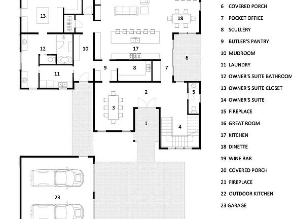 Gourmet kitchenState-of-the-art thermador appliancesFive spacious bedroomsBeautifully appointed bathroomsLush surroundingsScandinavian inspired elegancePremier lot