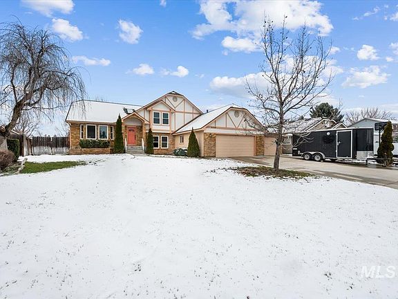 Come see this 2000sqft home on just under half acre with no rear neighbors! This home is bright and airy with vaulted ceilings, hardwood floors and updates throughout, including new paint. Enjoy watching the sunsets in the fun-filled backyard that is fully fenced with a trampoline and swing set. Two covered decks with plumbing for hot tub & gas BBQ. RV parking, fruit trees, garden area and storage shed (16x12). Main level has a formal living room with glass sliding doors. Kitchen has new quartz counter tops, beautiful new tile and lots of natural light. Dining room has french doors leading to upper back deck. Lower level has a large family room boasting a cozy gas fireplace and french doors to lower back deck. A 3rd full bath, 4th bedroom & large utility/mud room leads out to the handyman's 3-car insulated garage with epoxy floors. The 3rd bay garage is split off with its own mini split HVAC system. Upstairs master includes remodeled bath with separate shower & dual vanities and walk in closet. No HOA!